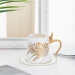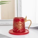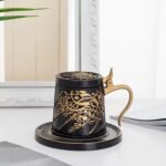 - Includes matching saucer and removable lid