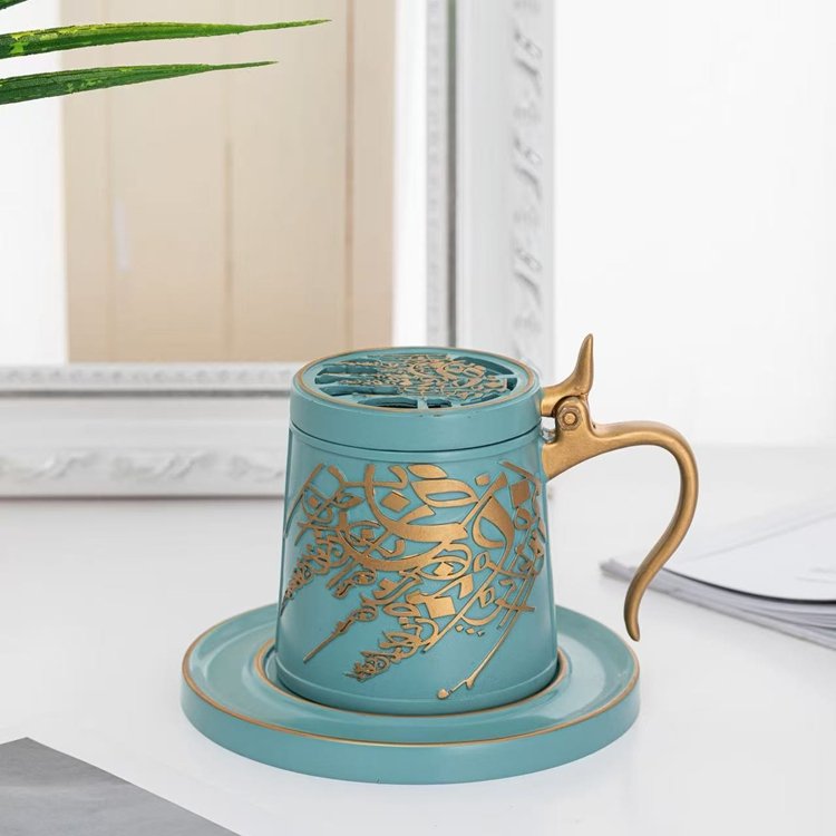 Luxury Arabic Resin Incense Burner Cup with Handle and Lid