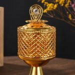 - ✨ Premium gold metal body with lattice pattern and crystal-embellished lid