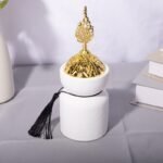 Minimalist Ceramic Incense Burner with Golden Lid & Tassel