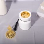 - ✨ Sleek white ceramic body with gold-toned metal lid for a refined modern look