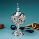 Round Electric Incense Burner – Metal Flower Design